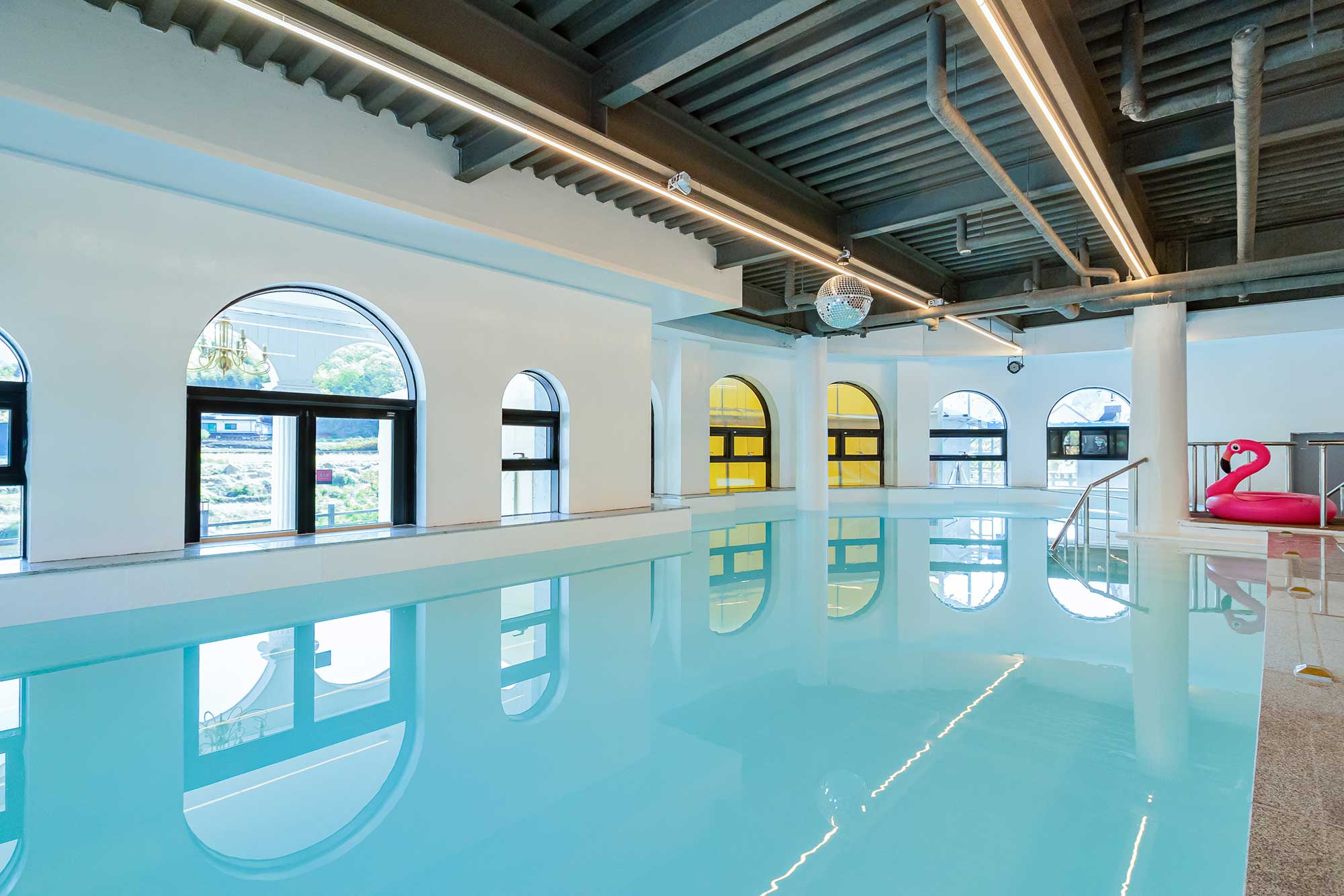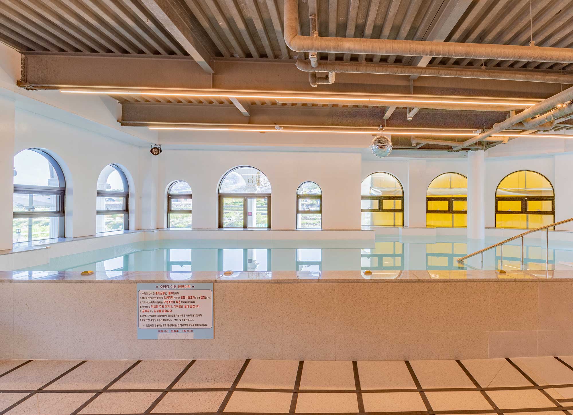 로얄맨션 1층 라온해름에 위치한 실내 수영장은 유리 창밖으로 시간에 따라 색다른 분위기를 연출하며, 사계절 내내 쾌적한 환경에서 수영을 즐길 수 있는 레저 시설로 가족 또는 연인/친구들과 즐거운 시간을 보낼 수 있습니다.