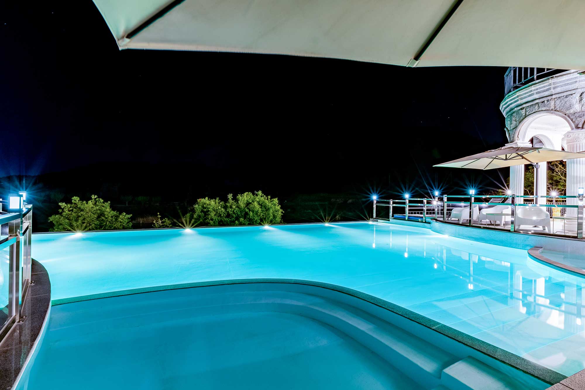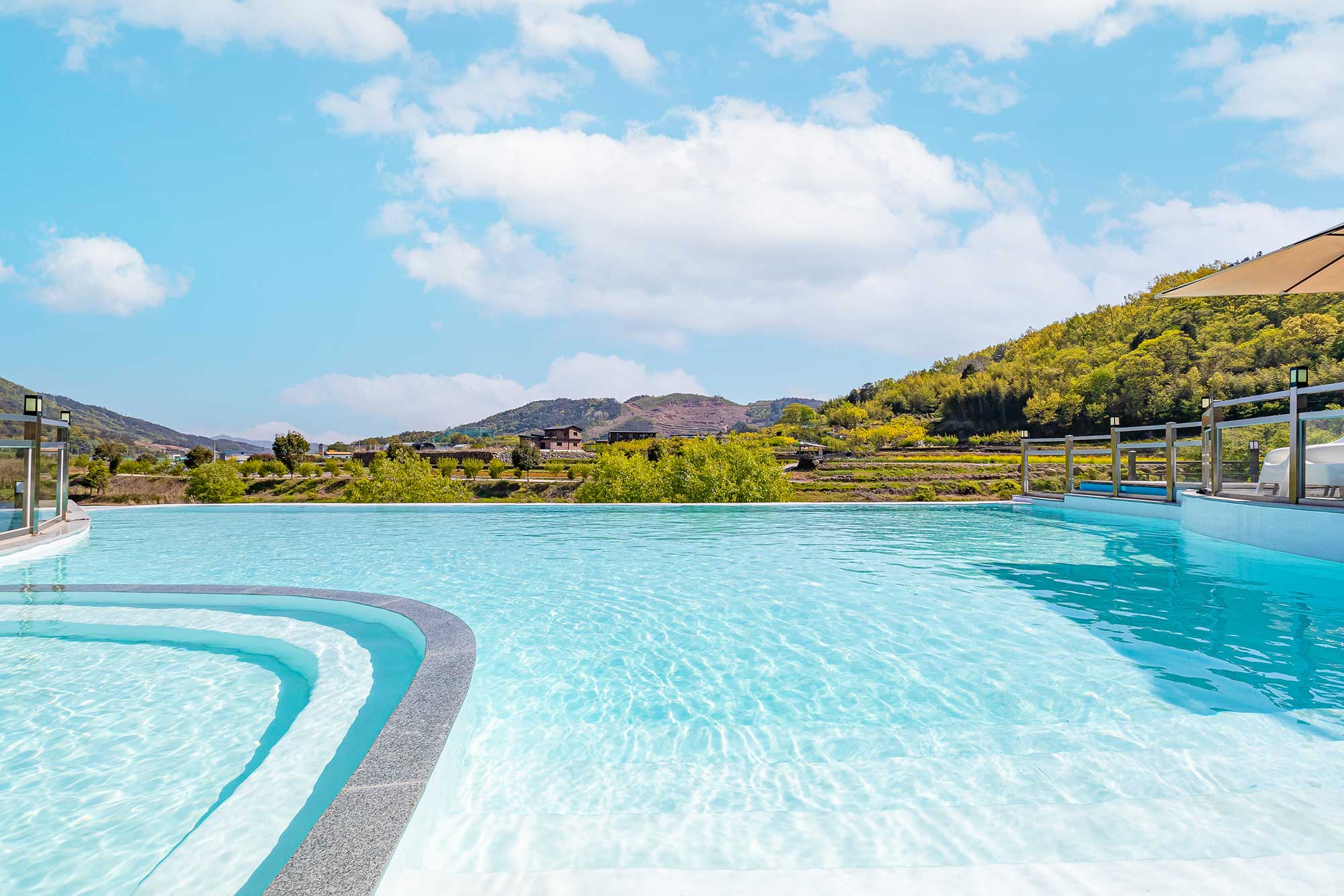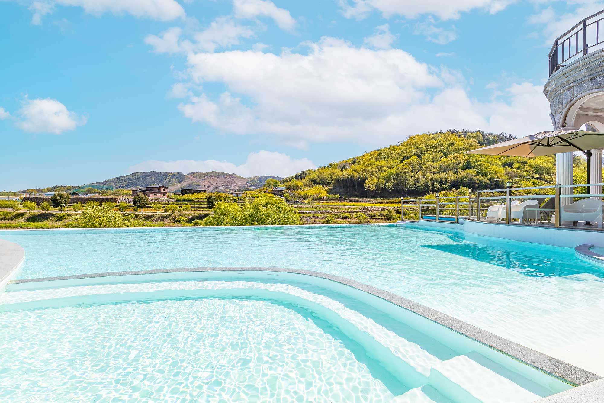탁 트인 전망과 넓은 공간, 그리고 강을 향해 길게 이어지는 듯한 레이크 인피니티 풀은 국내에서 경험하지 못한 특별한 환경을 제공하며, 키즈 전용풀도 함께 자리 잡고 있습니다. 풀 사이드에 마련된 선베드에서 여유로운 휴식을 만끽하시기 바랍니다.